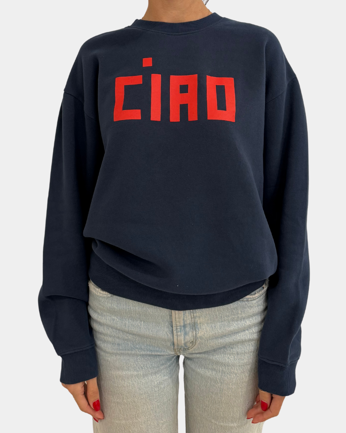 The sweatshirt that says "Ciao". Let's get comfortable in this soft and cozy look.