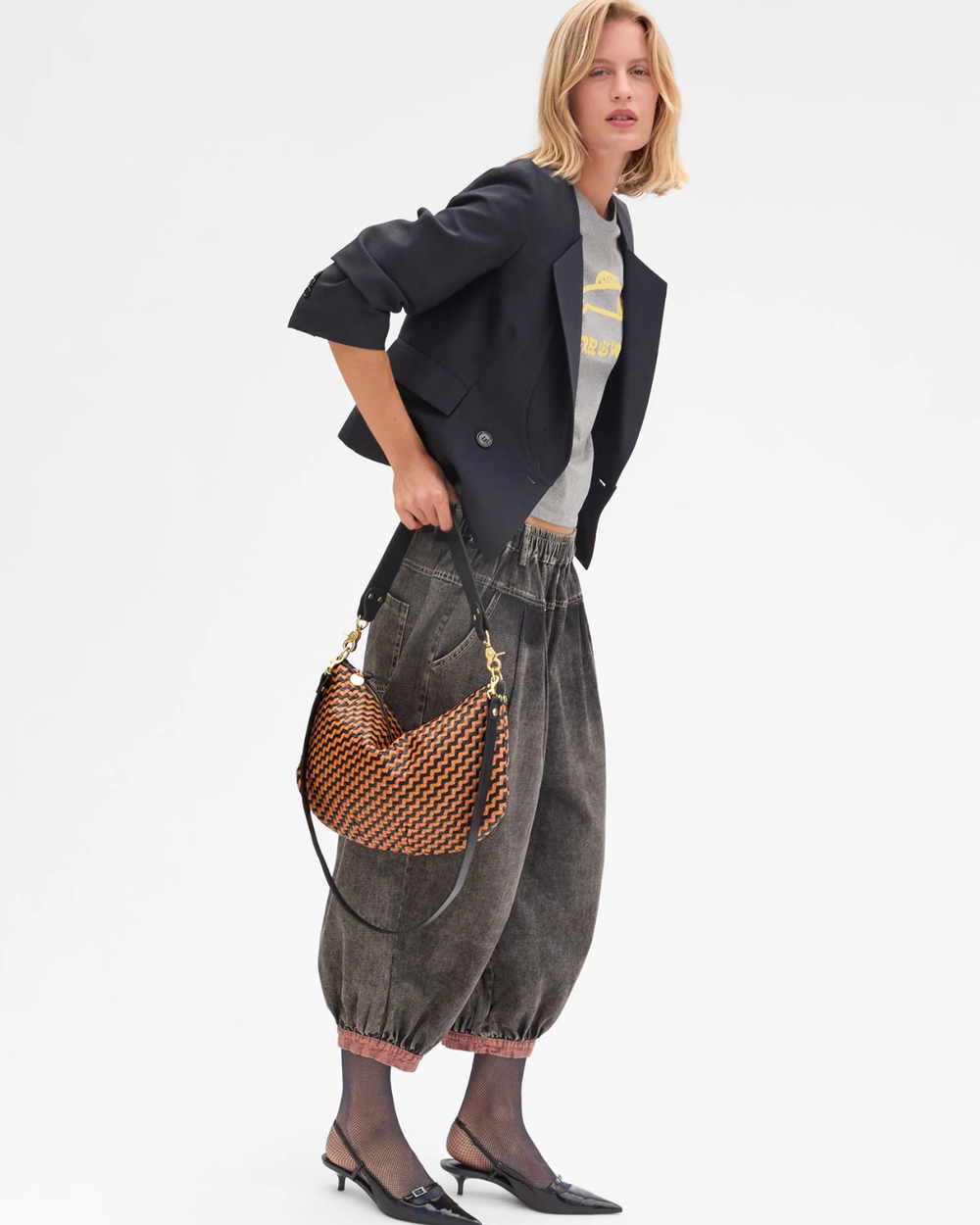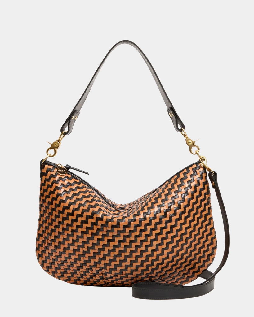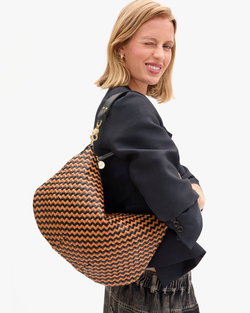This iconic zip-top crescent is your new go-to for carrying everything without the fuss. Handwoven leather in a striking zig-zag pattern keeps things stylish while the generous interior fits your iPad, water bottle, sunglasses, and more—plus one handy pocket for the little stuff. One bag, endless possibilities.