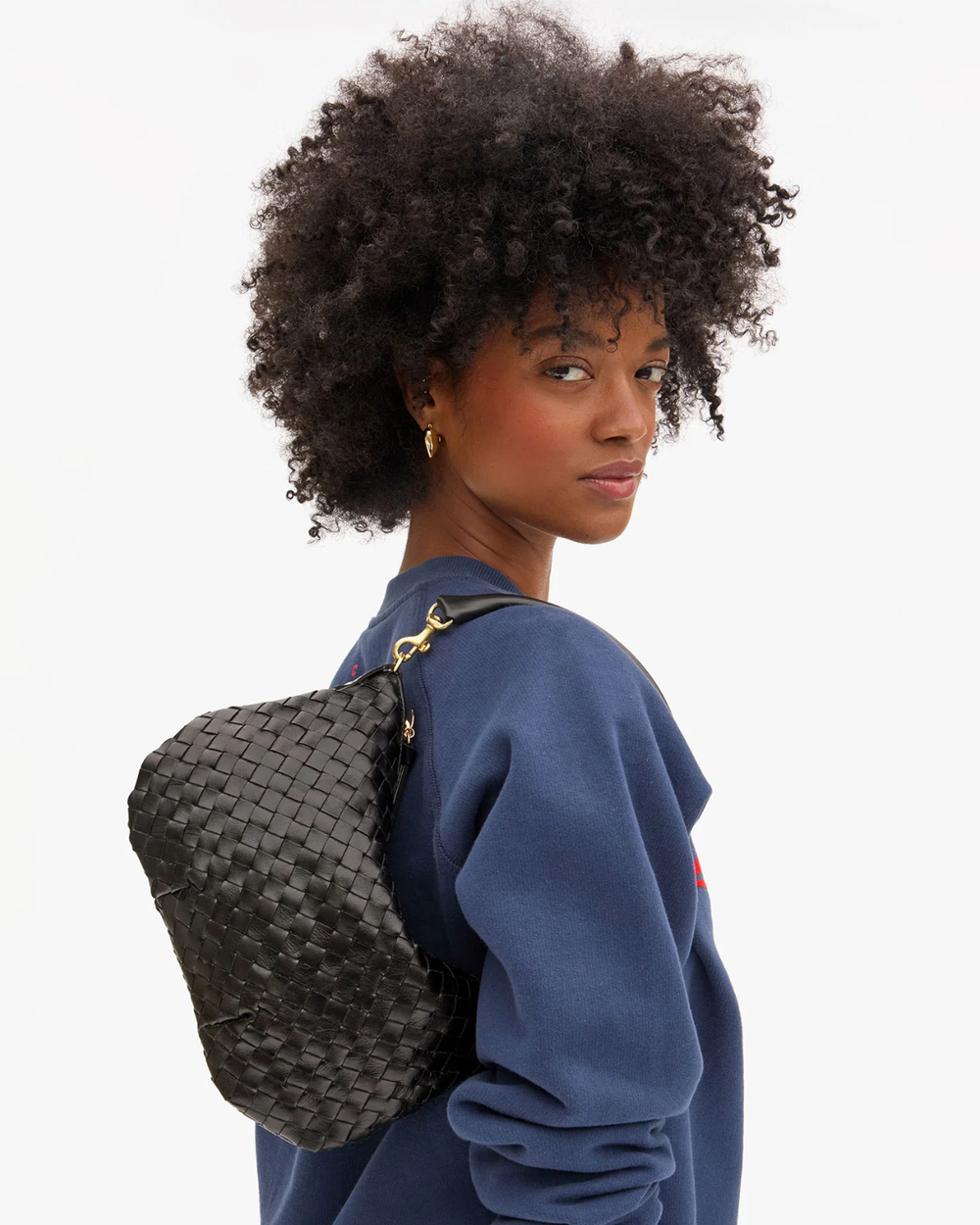 Your new go-to bag. This handwoven leather messenger zips shut and swings from shoulder or across your body. Fits your phone, keys, wallet, and shades with room to spare. Cute, compact, and ready for anything.