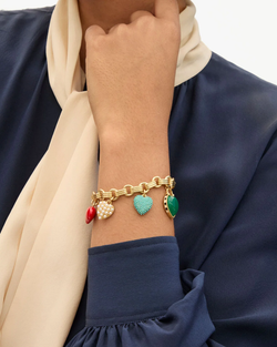 The chicest charm bracelet featuring five heart beads. Add a touch of fun to your everyday look.