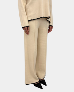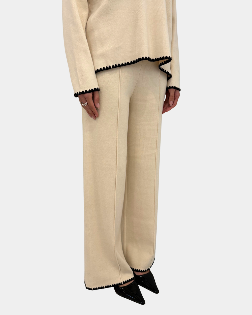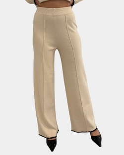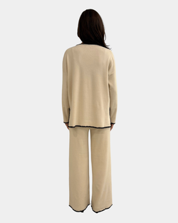 Slip into these oatmeal high-waisted pants featuring a charming stitch hem detail. Designed to pair perfectly with the matching v-neck sweater, they create an adorable coordinated set that's both flattering and fun.