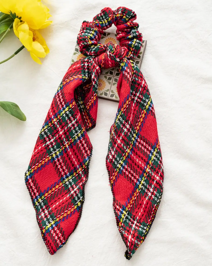 A hair tie with a scarf ending that brings an on trend and chic vibe to your look.