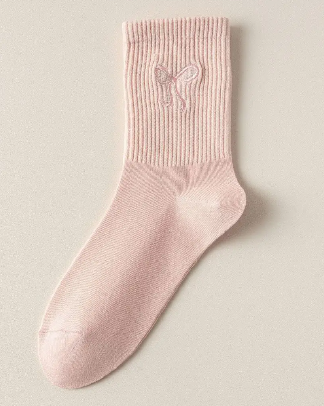 These pink crew socks combine softness and comfort with a refined embroidered bow detail, adding a subtle touch of elegance to your everyday essentials. Designed for all-day wear, they offer a cozy fit while elevating your style with understated sophistication. Perfect for those who appreciate classic comfort with a delicate, feminine accent.