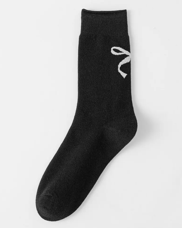 These cozy cotton crew socks bring a playful touch to your everyday look with a single charming white bow on the back. Soft and comfy, they’re perfect for adding a little fun while keeping your feet snug all day long.