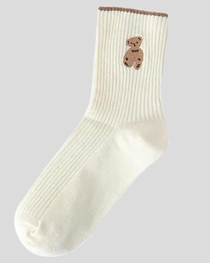 Brown Bear Crew Socks - Off White