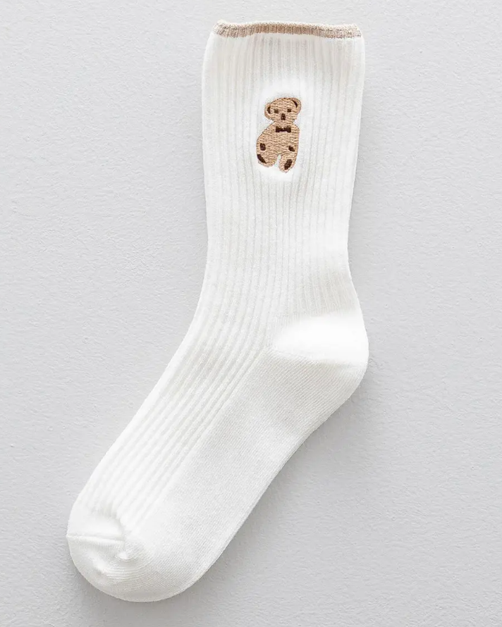 Cute and cozy, these crew socks feature an embroidered teddy bear design that is on trend and so comfy.