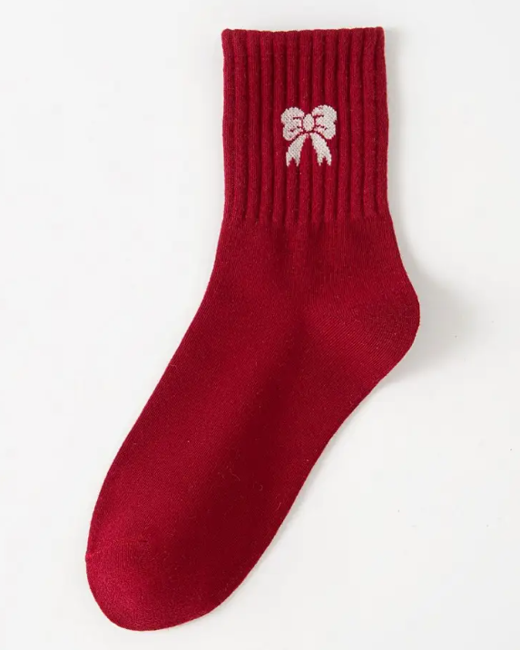These soft cotton crew socks offer both comfort and a subtle touch of elegance. Crafted from breathable cotton, they provide a gentle fit throughout the day. The delicate cream bow detail on the side adds a refined, feminine accent, perfect for enhancing your everyday wardrobe with understated sophistication.