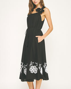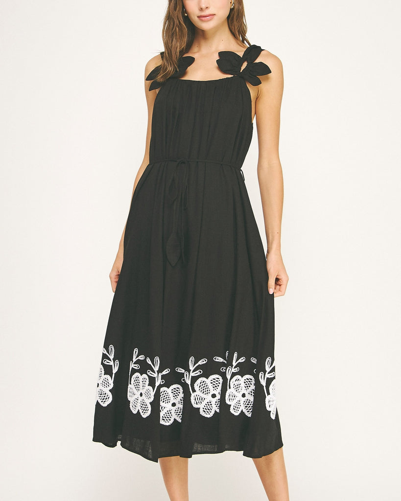 Dance through your day in this delightful black linen dress that's anything but basic! Adorned with charming flower petal embroidery, this playful piece brings a touch of whimsy to your wardrobe. The breathable linen fabric keeps you cool while the unique petal details ensure you'll bloom wherever you go. Perfect for twirling from brunch to beach to evening adventures!