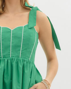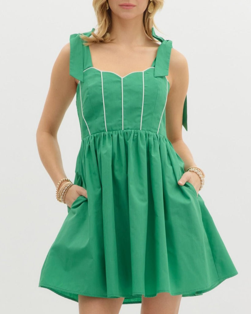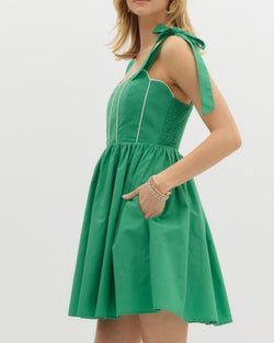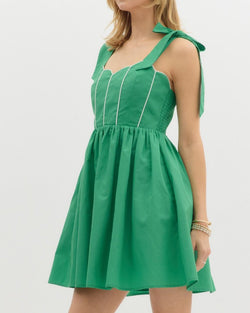 Add a pop of color to your wardrobe with our White Stitch Detail Dress in Green. Featuring playful white stitching details, this dress is perfect for any occasion. Stand out from the crowd and add some quirkiness to your style with this unique dress. (Bonus: it's also super comfy!)