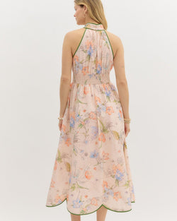 Twirl into summer with our Floral Halter Midi Dress in dreamy blush! This flirty number features a flattering halter neckline that shows off your shoulders while the midi length keeps things just flirty enough. The delicate floral pattern adds a touch of whimsy to your wardrobe. Perfect for garden parties, brunch dates, or whenever you feel like turning heads!
