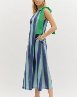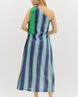 Make waves in this sassy blue-green striped dress! The flirty one-shoulder design features an adorable bow tie detail that's just begging to be shown off. Perfect for turning heads at summer parties or seaside adventures—this playful number says "I'm fun and I know it!" Pair with your favorite sandals and a carefree attitude for maximum impact!
