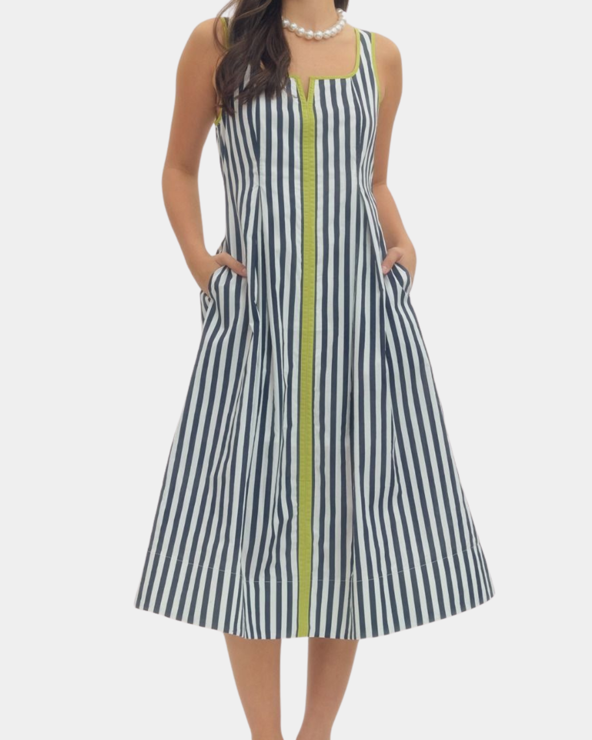 Featuring a flattering V-neckline accented with contrast trim, this piece offers understated elegance with practical style.