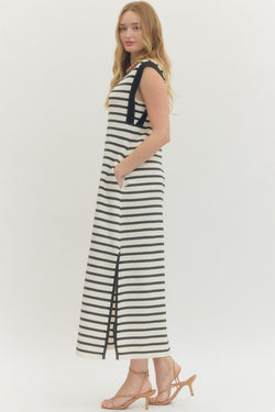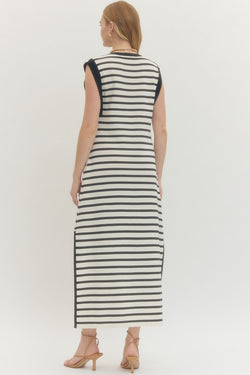 This cream and black stripes create a timeless look that works for everything from casual outings to dressed-up occasions. Soft ribbed fabric hugs in all the right places while the flowing maxi silhouette keeps things breezy and comfortable.