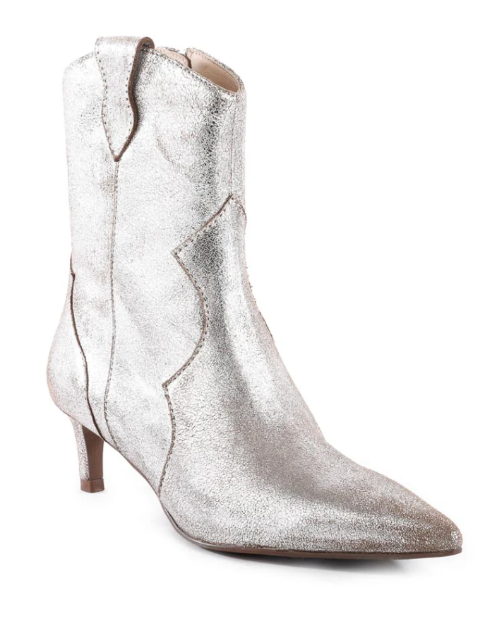 A fresh new way to wear western, these heeled boots feature classic yoke stitching and side pull tabs. A tight-to-the-ankle fit, coupled with dramatic pointed toe and modern kitten heel, make for a sleek silhouette that’s at ease anywhere you go.