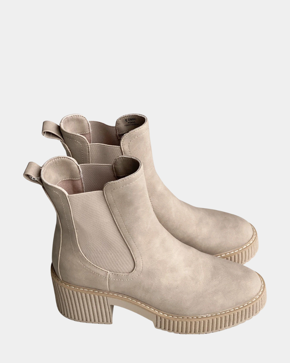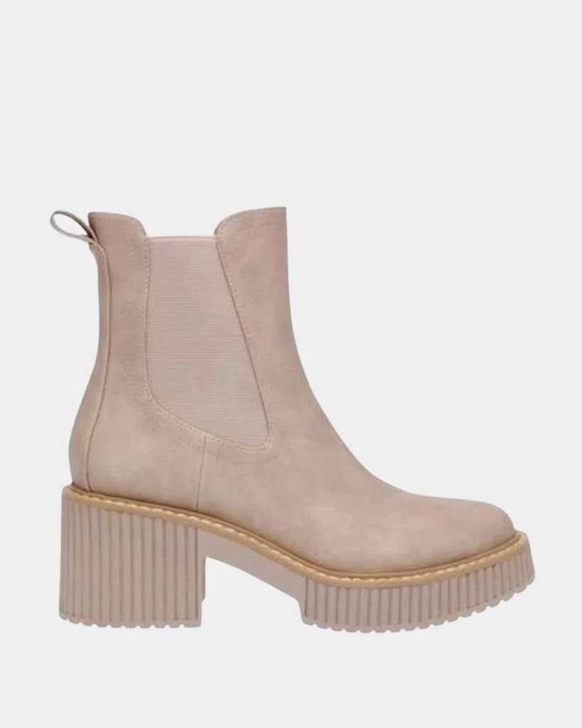 DV Dolce Vita’s Darcel Chelsea booties blend bold design with versatile appeal. Featuring platform heels and a convenient pull-on style, these rugged yet refined booties effortlessly complement both casual and dressier outfits.