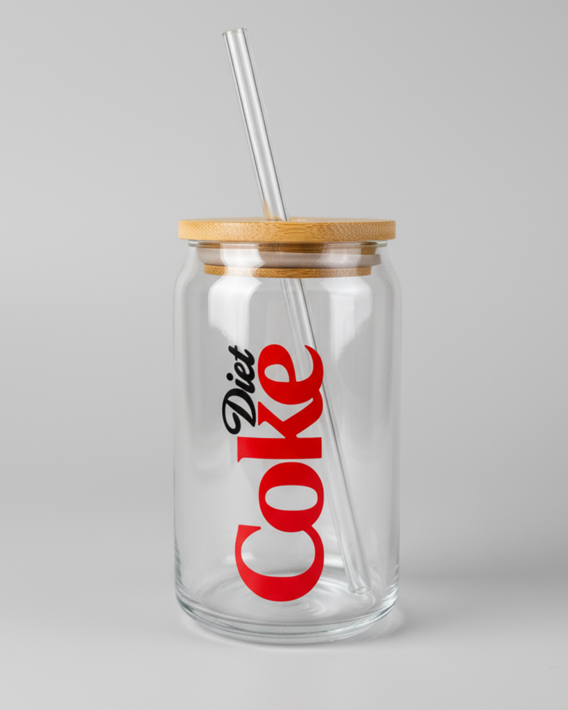 Sip in style with this 16 oz glass beer can tumbler featuring a playful Diet Coke design! Crafted with premium vinyl graphics, it's the perfect way to enjoy your favorite beverages with a fun twist. Comes with a matching lid to keep your drink fresh and ready to go.