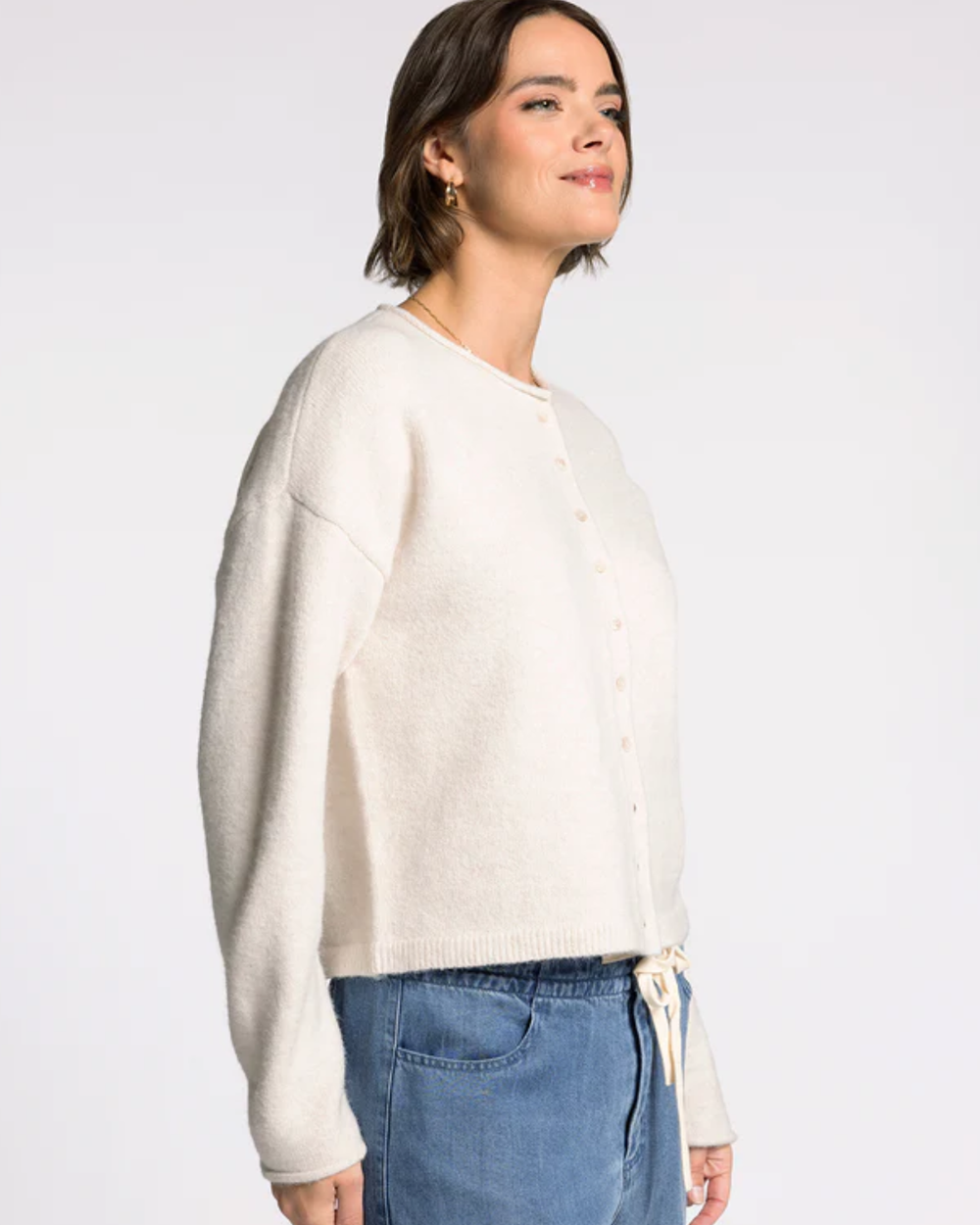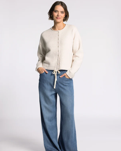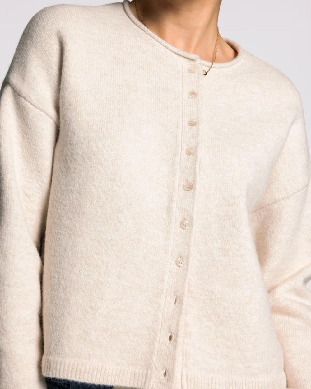Meet your new favorite layer—a relaxed cardigan in sumptuous yarn with rolled neck and sleeve details that feel as good as they look.