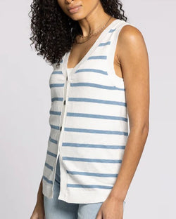 Simple yet chic, this timeless top is featured in a cotton knit fabrication and slim-fitting silhouette with a v-neckline and button-front closures.