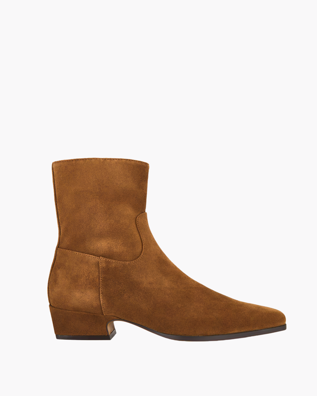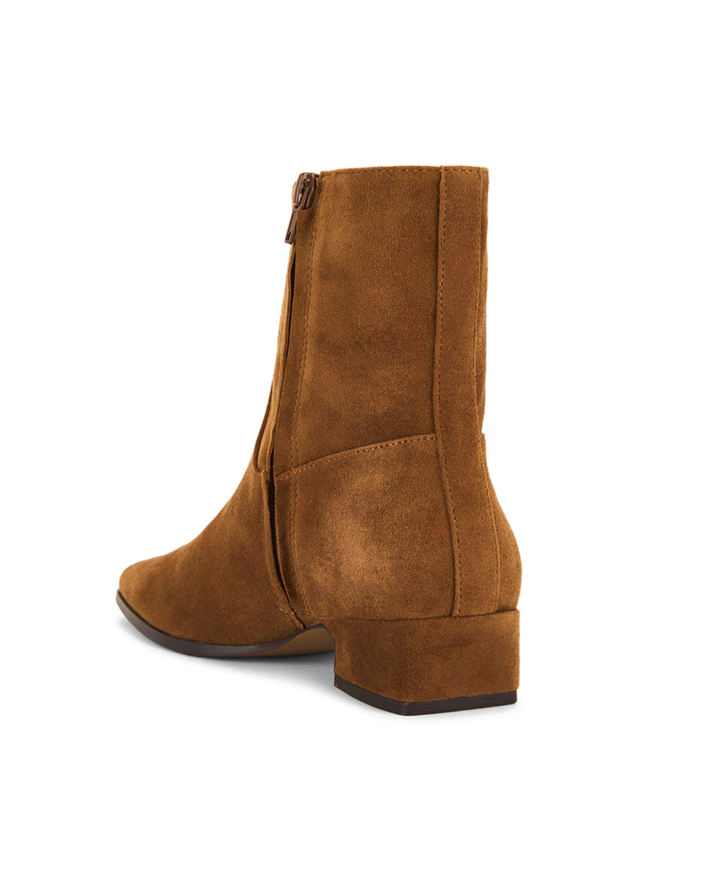 Discover refined elegance with the Steve Madden Dusty Boots in luxurious chestnut suede. These boots showcase meticulous attention to detail, featuring a graceful silhouette that complements any wardrobe.