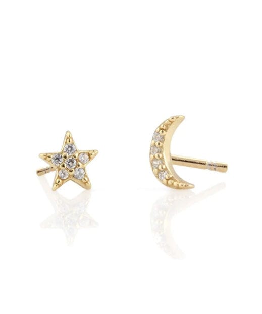Star and Moon pave stud earrings