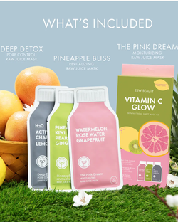 Transform your skin with our Vitamin C-packed sheet mask set, curated to deliver the ultimate refreshing, glowing complexion. Infused with rich antioxidant ingredients such as Kiwi, Grapefruit, and Lemon Juice, they will work to provide the ultimate protection and repair for your skin! These selected sheet masks are formulated to keep your skin intensely moisturized, revitalized, and purified, leaving you with a healthy glow.