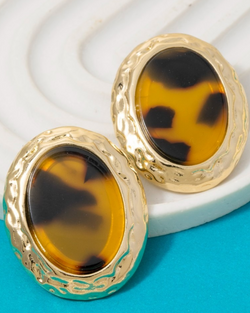 These stud earrings feature a chic vintage-inspired oval tortoise shell design in a bold large size. Appreciate the detailed craftsmanship that elevates these earrings into a distinctive statement accessory.