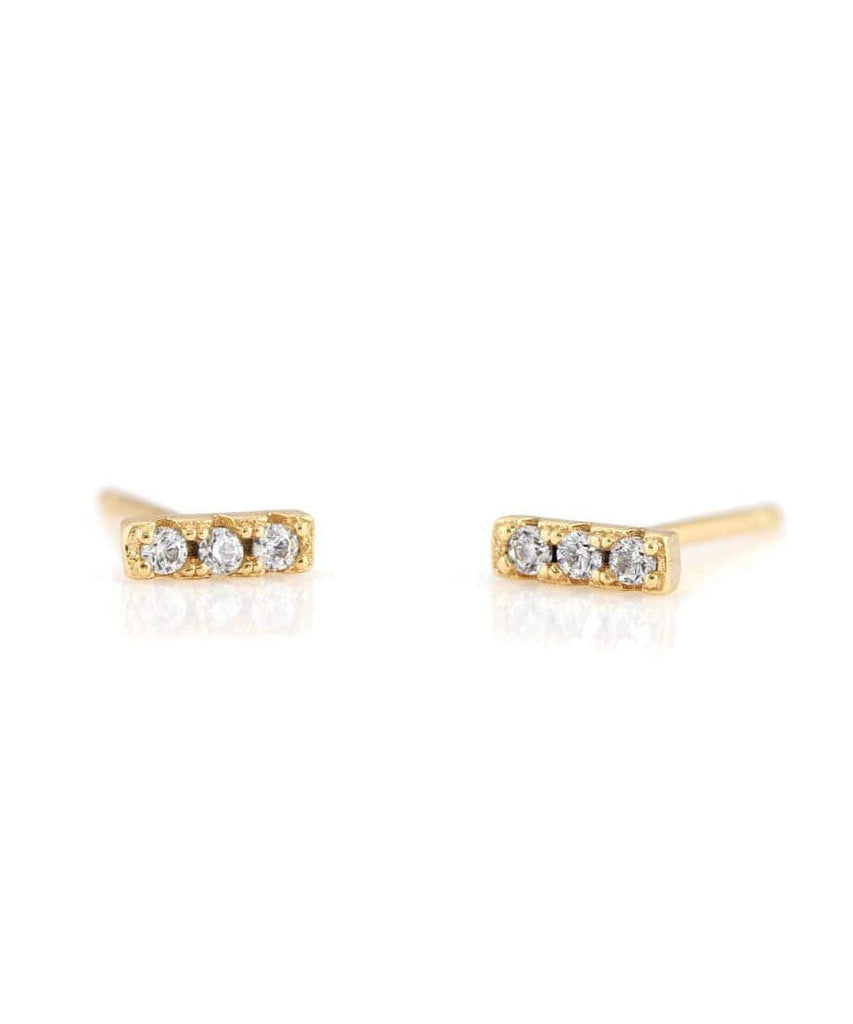 Studs measure approximately 0.25 inches. Gold vermeil (solid sterling silver plated with 18k gold). Set with simulated diamonds. Packaged in signature bottle.