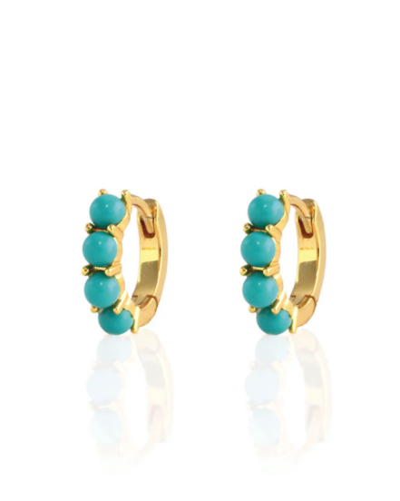 The cutest huggie hoop with turquoise stone accents. A must for everyday wear.