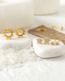 This Flower Velvet Stud Set in gold adds a soft, stylish pop to any outfit with its charming floral design. Perfect for mixing and matching, these three playful pieces brighten your day with a touch of sunshine and sparkle.