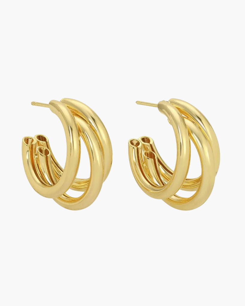 Turn heads with these dazzling triple hoop earrings that bring fun and flair to any outfit. Lightweight and comfy, they perfectly blend bold style with a touch of elegance for everyday wear.
