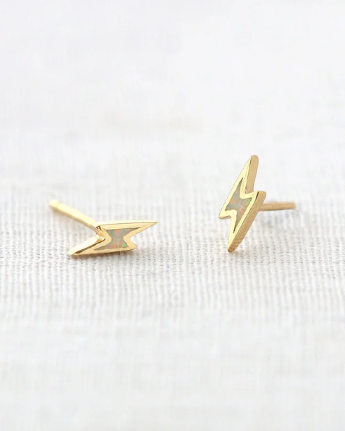 Catch a flash of brilliance. These opal lightning bolt studs add a jolt of shimmer to your ear stack. Made with 18K gold vermeil and inlaid with glowing opals, they deliver just the right mix of bold and dainty. At 7mm tall, they’re small but mighty.