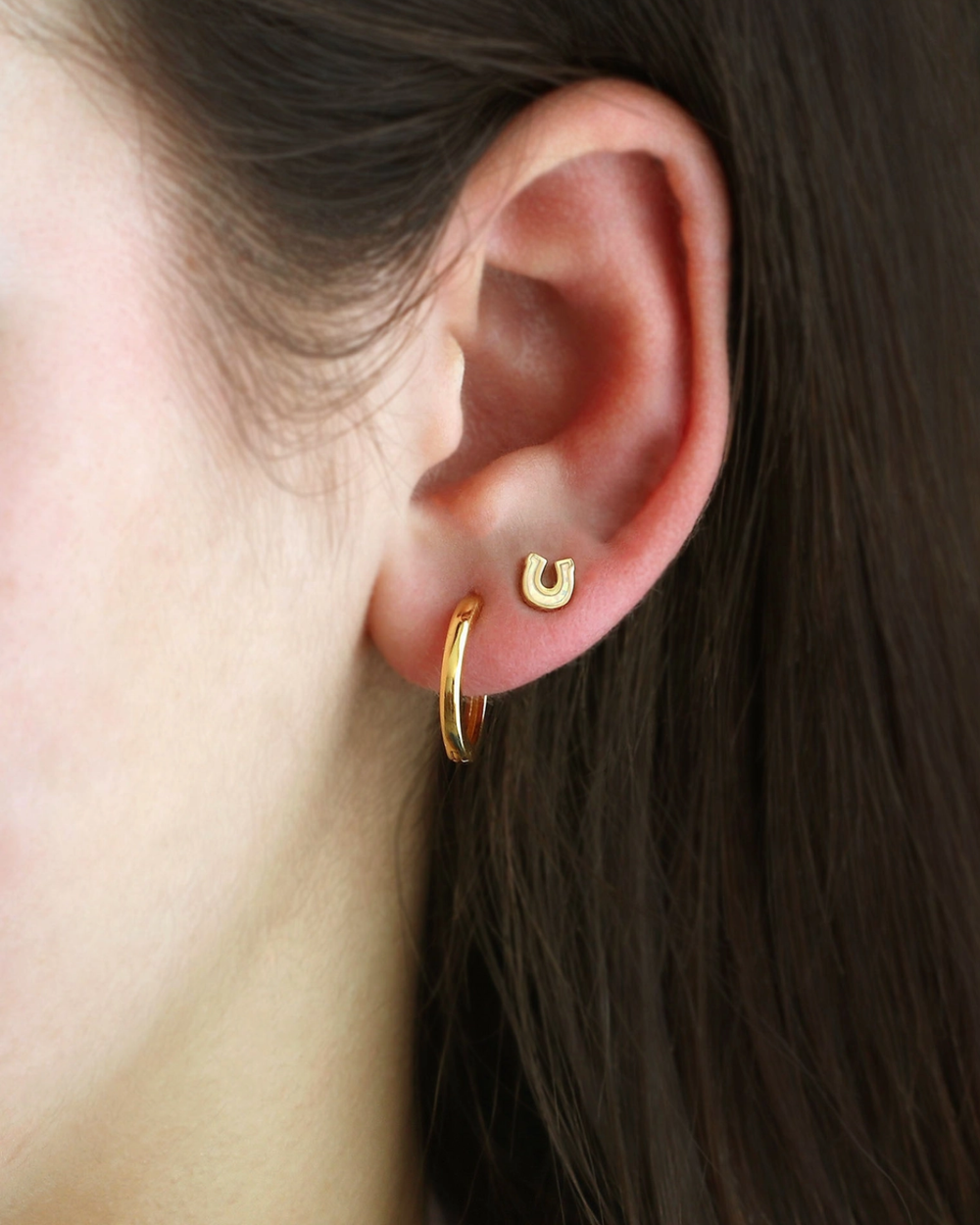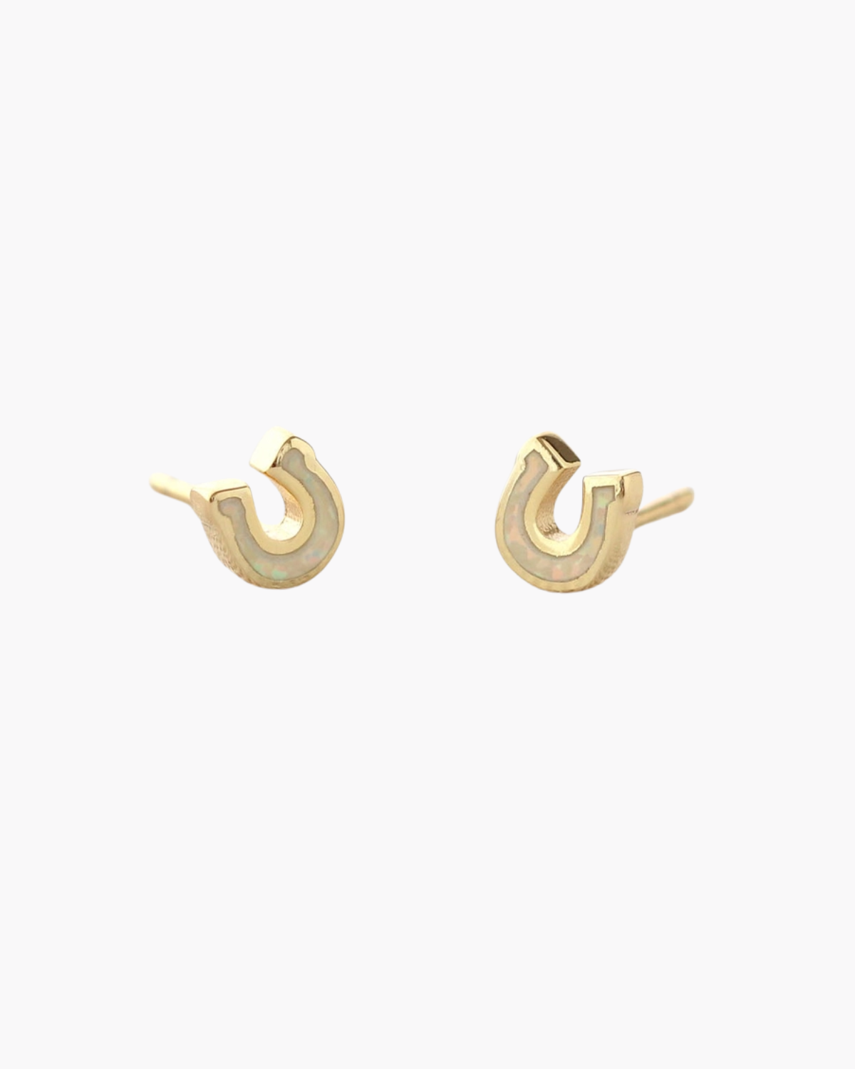 Tiny horseshoe studs packed with opal sparkle and 18K gold vermeil charm. At just 4mm, they're perfect for everyday wear—solo or stacked. A little luck never hurt.