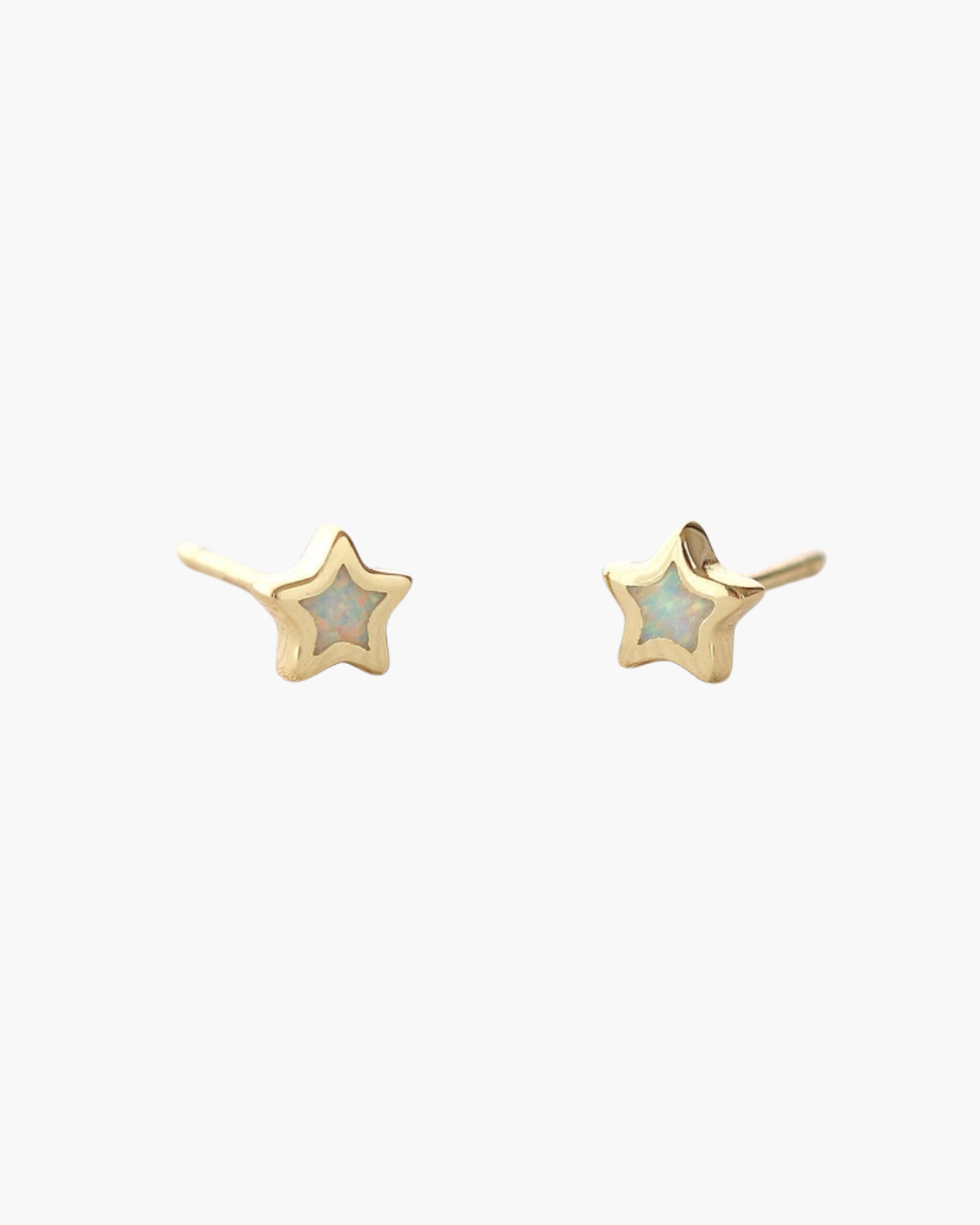 Little stars, big sparkle! These delicate opal star earrings are crafted from 18K gold vermeil and have just the right touch of celestial enchantment. The opals give them a dreamy glow, and their 4mm size makes them great for stacking or wearing alone. They also have comfortable butterfly backs for all-day shimmer.