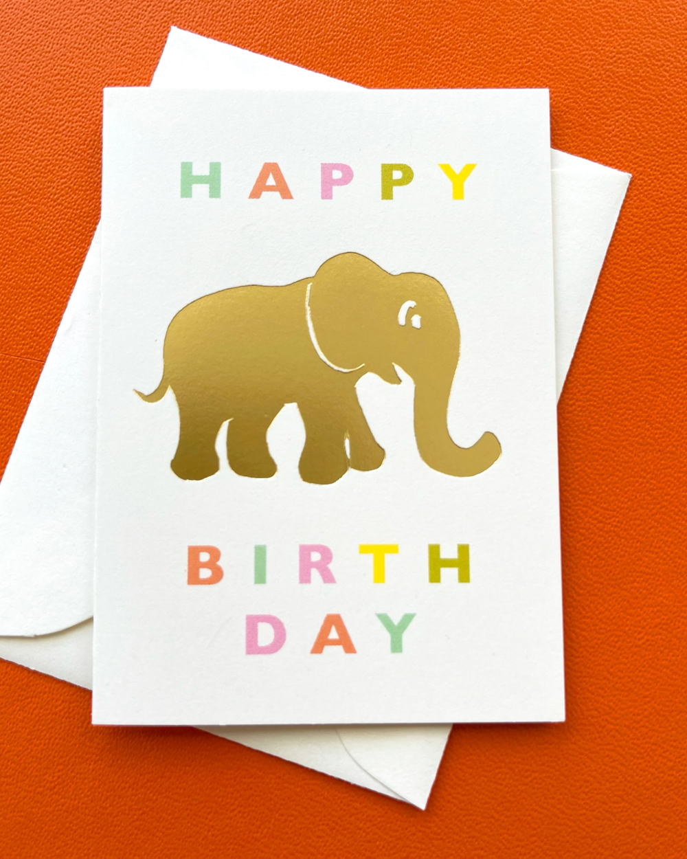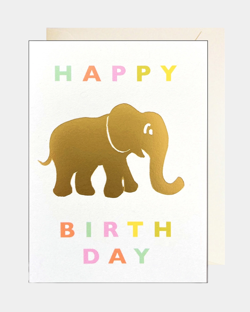 Tiny but mighty! This hand-drawn elephant card shines with gold foil details, making it the perfect playful accent for any gift.