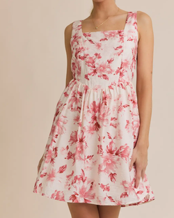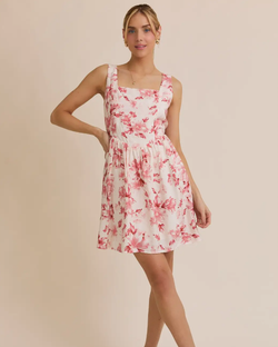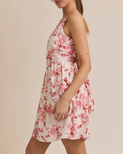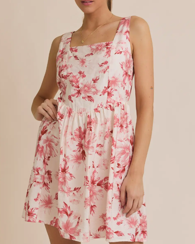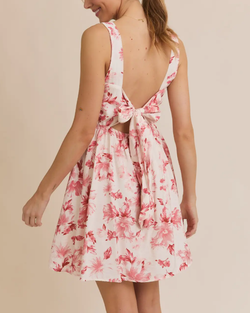 This darling floral print mini dress features a square neckline and a chic back tie detail. A summer staple that can be dressed up or down.