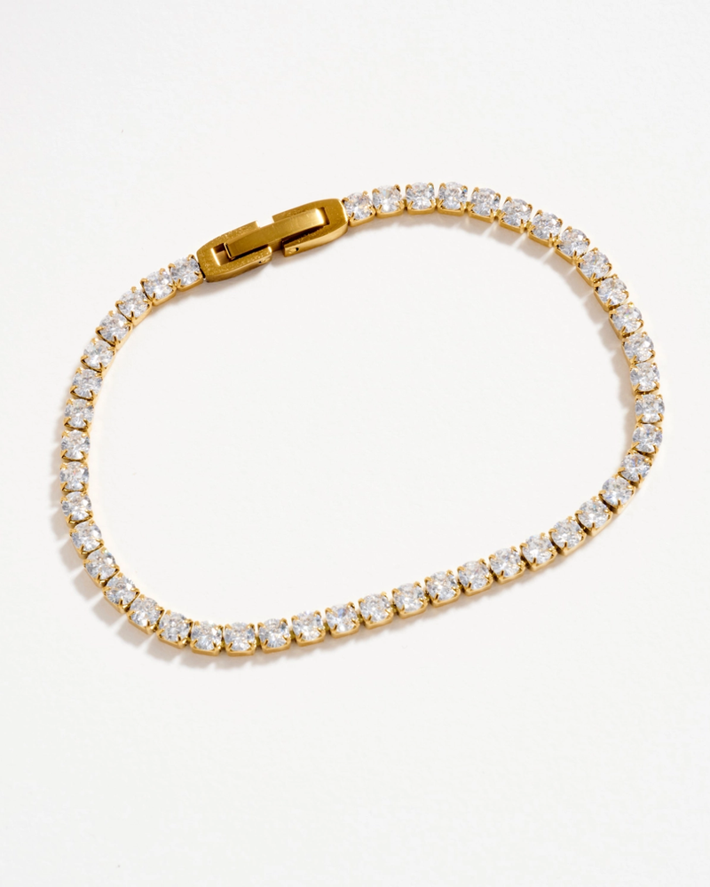 The Elaina Adjustable Chain Bracelet combines timeless design with practical versatility. This delicate piece features an adjustable slider for a customized fit. Wear it solo or layered for effortless sophistication that complements any ensemble.