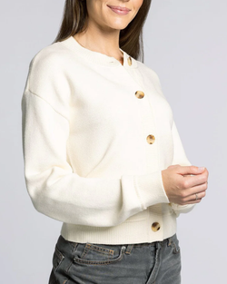 This classic knit cardigan features a full button front closure and drop shoulders. Leave it buttoned and style as a top or leave it open for layering. So chic!