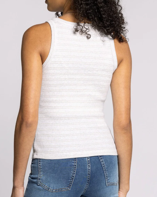 Your new favorite timeless tank, featured in a soft, ribbed knit fabrication and slim-fitting silhouette with a classic stripe print.