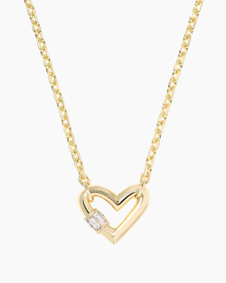 Enhance your necklace collection with the Emery Heart Gold Short Pendant Necklace, showcasing a distinctive heart-shaped pendant inspired by the popular Ari design. Adorned with baguette stones, it delivers a refined and contemporary interpretation of hardware jewelry.