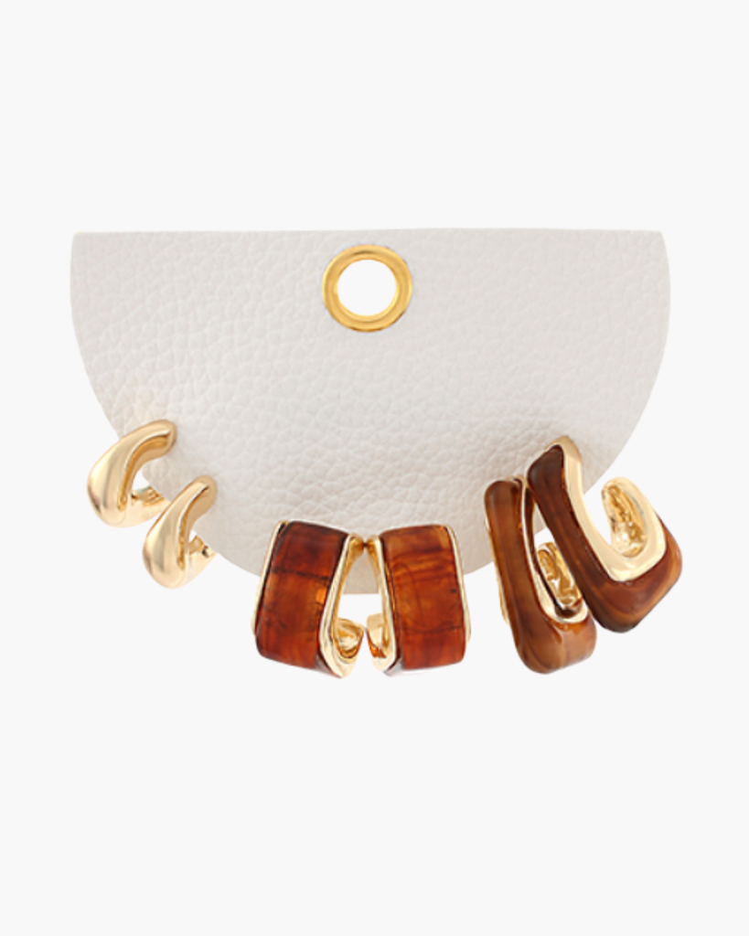 Mix and match your way to the perfect look with this charming earring set in rich brown and lustrous gold. Whether you're layering styles or switching up your vibe, these versatile pairs let you express your personality with effortless flair and fun.