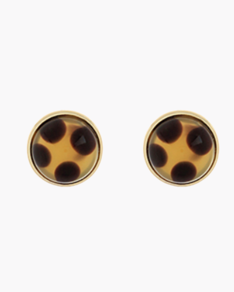 These round earrings blend brown and black for a polished, contemporary look. An understated accessory that elevates any ensemble with quiet refinement.