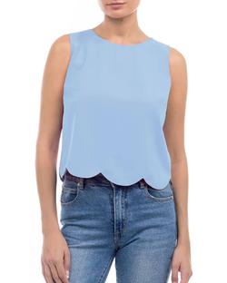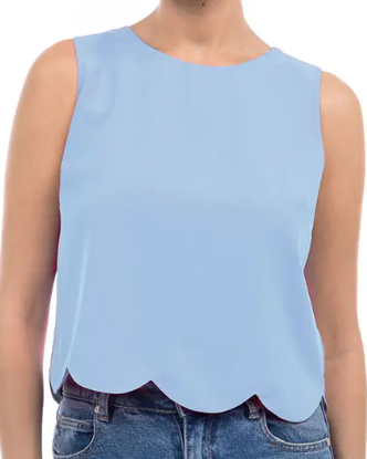 Stay effortlessly stylish with this sleeveless top featuring a scalloped hem. The sleeveless design adds a touch of casual sophistication, while the scalloped hem brings a playful and feminine element to the top. Ideal for warm days or versatile layering, this sleeveless scalloped hem top is a chic and easy-to-style piece that effortlessly elevates your casual wardrobe.