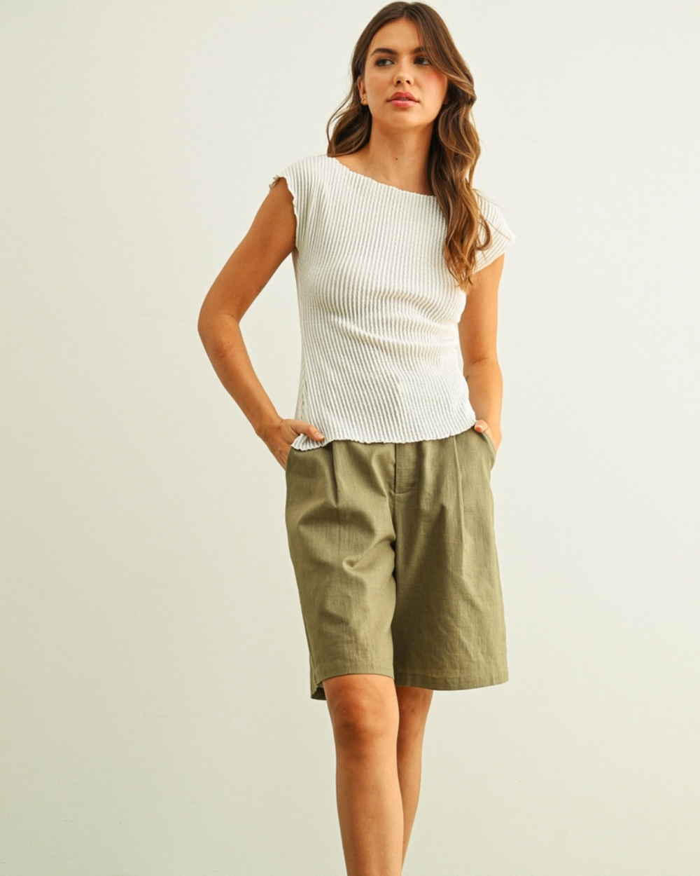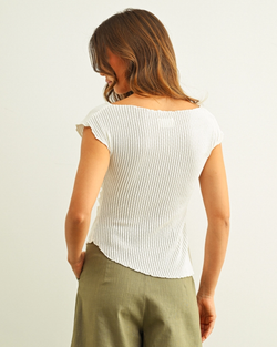 Effortless elegance meets textured style in this crinkled cap sleeve top. The distinctive shirring detail adds dimension and visual interest, while the relaxed cap sleeves offer a refined silhouette.