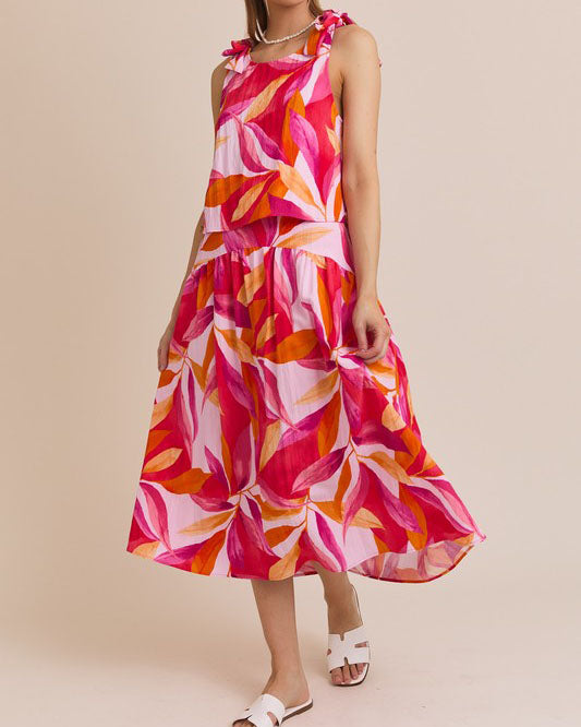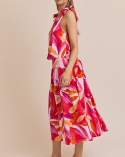 This gorgeous tropical print skirt and top make the perfect set for summer! Vacation and ready, this darling set is a must for day events, summer outings and days at the beach.