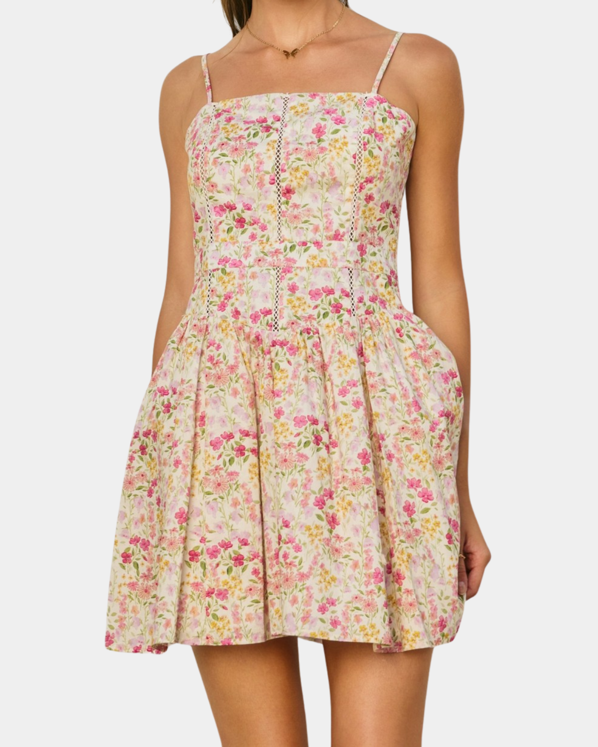 This playful number features charming latticed trim inserts and a flattering dipped waist that'll have you feeling effortlessly chic. Perfect for garden parties, casual dates, or whenever you want to add a touch of whimsy to your day.