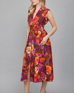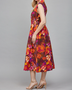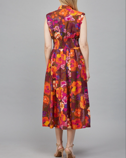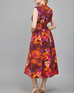 This playful midi dress features a vibrant flower print and a convenient front zip closure for easy wear. Short sleeves keep it breezy and fun for any day out.