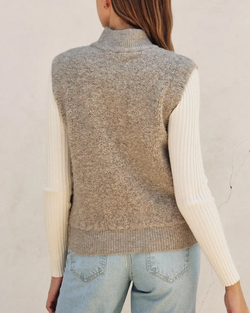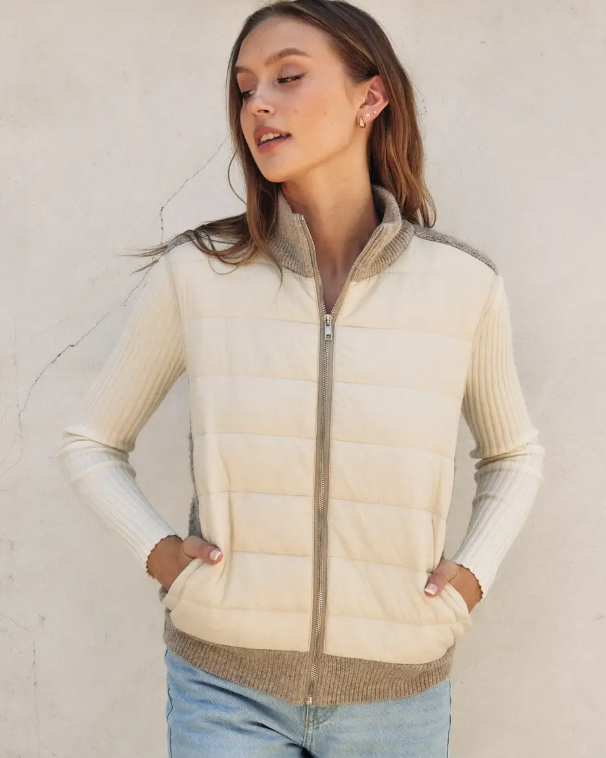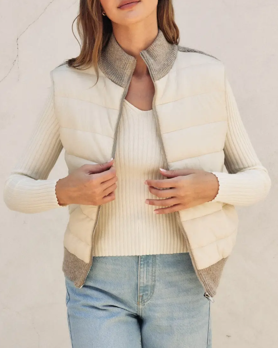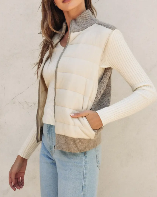 Sherpa and Puff Contrast Vest - Cream Oat