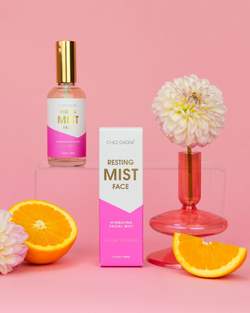 The Resting Mist Hydrating Facial Mist is a fresh burst of glow with skin-loving goodies like aloe, orange blossom, and hibiscus to soothe and hydrate—no complicated routines needed. Wrapped in a chic glass bottle with gold accents, it’s perfect for setting makeup, refreshing anytime, or adding a playful pop to your day.