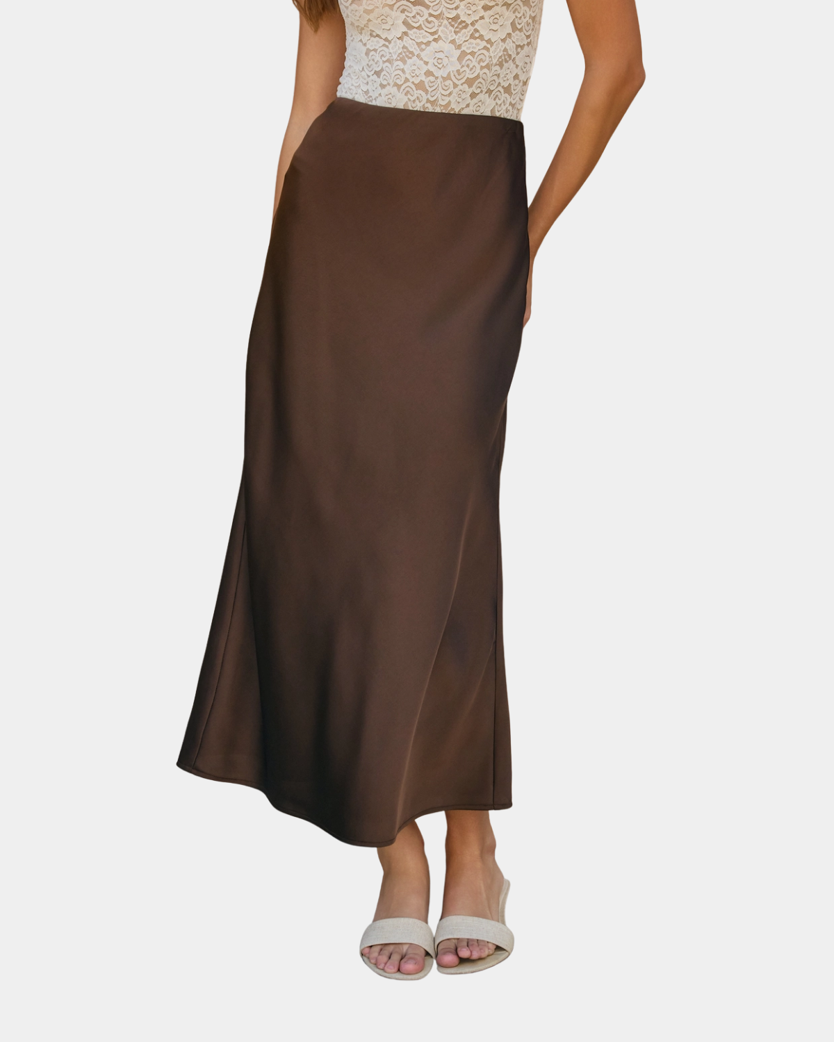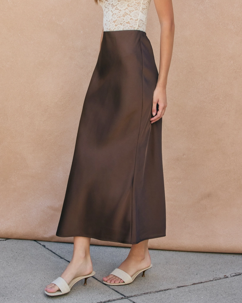 Elevate your evening look with this Satin Skirt, designed to glide effortlessly with every step. Its sleek pull-on fit combines comfort and elegance, making it your perfect companion for any night out.
