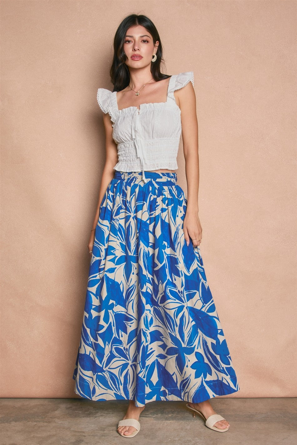 Turn heads in this vibrant midi skirt bursting with tropical energy. The tie-waist design offers a flattering, adjustable fit that pairs perfectly with a peplum top for an adorable coordinated look that's ready for any adventure.